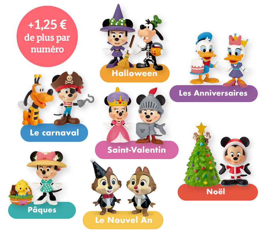 Au fil de la collection, vous recevrez des numéros exclusifs destinés à fêter les moments les plus importants de l’année avec vos premiers amis Disney : Noël, Carnaval, Halloween, anniversaires et plus encore!