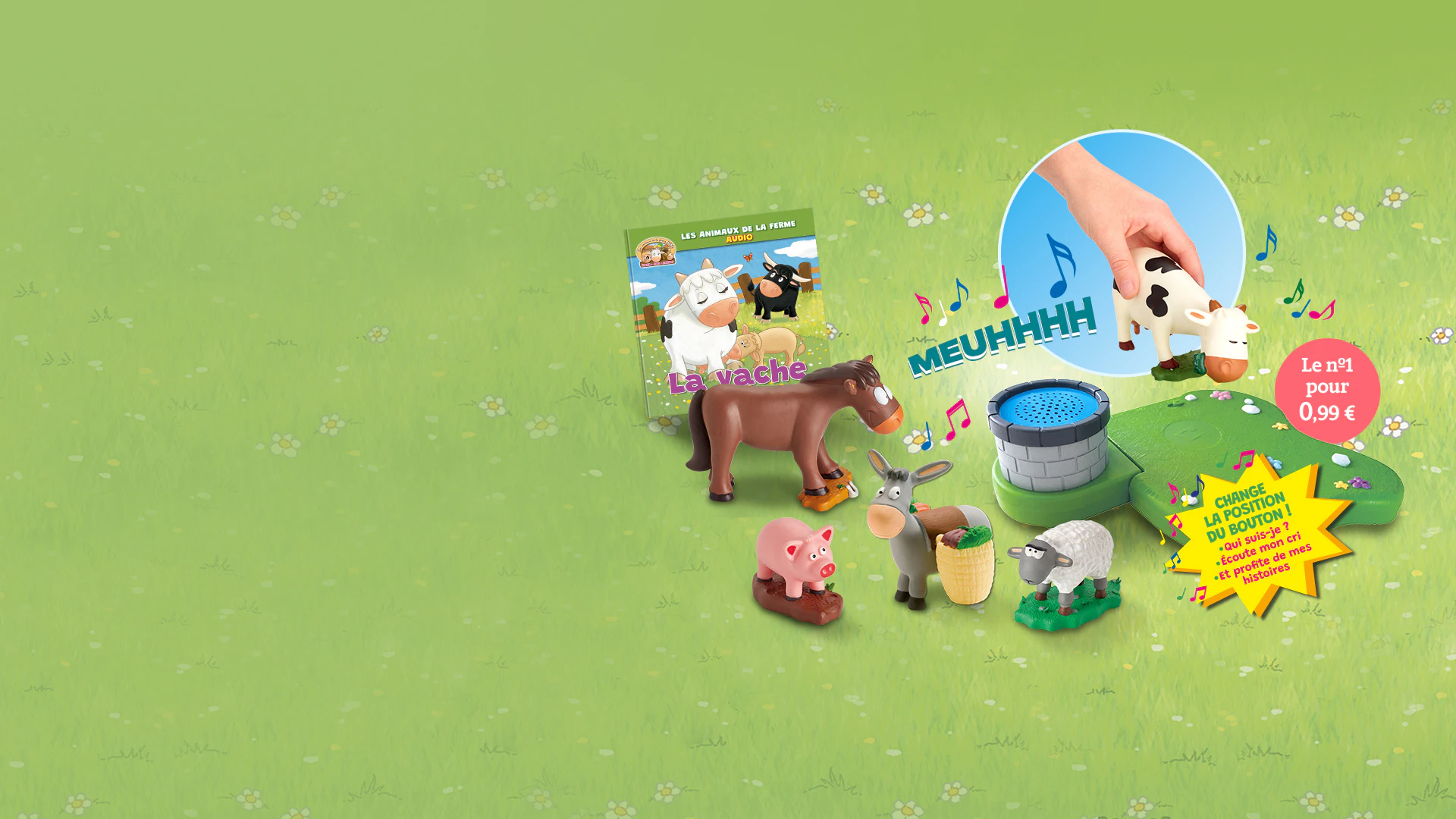 Numéro après numéro, la ferme va s'agrandir avec de nombreux animaux en audio : la vache et son veau, la famille des cochons, les ânes, les lapins, les poules, les canards, les agneaux... Et tous leurs amis malicieux et sympathiques !