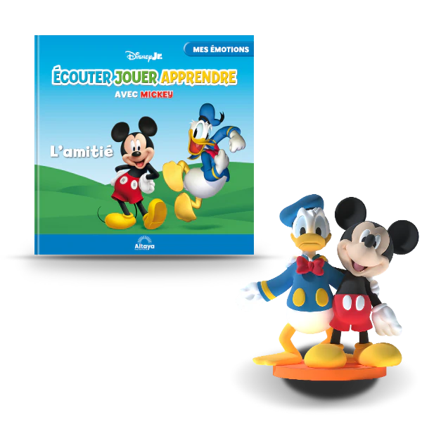Rencontrez vos personnages préférés – Mickey Mouse, Donald Duck, Dingo, Minnie, Daisy, et bien d’autres encore – dans cette magnifique collection de livres d’histoires et de figurines audio que votre enfant adorera. Placez simplement la figurine sur l’enceinte et c’est parti ! Comme par magie, vous entendrez le livre d’histoires prendre vie au fur et à mesure !