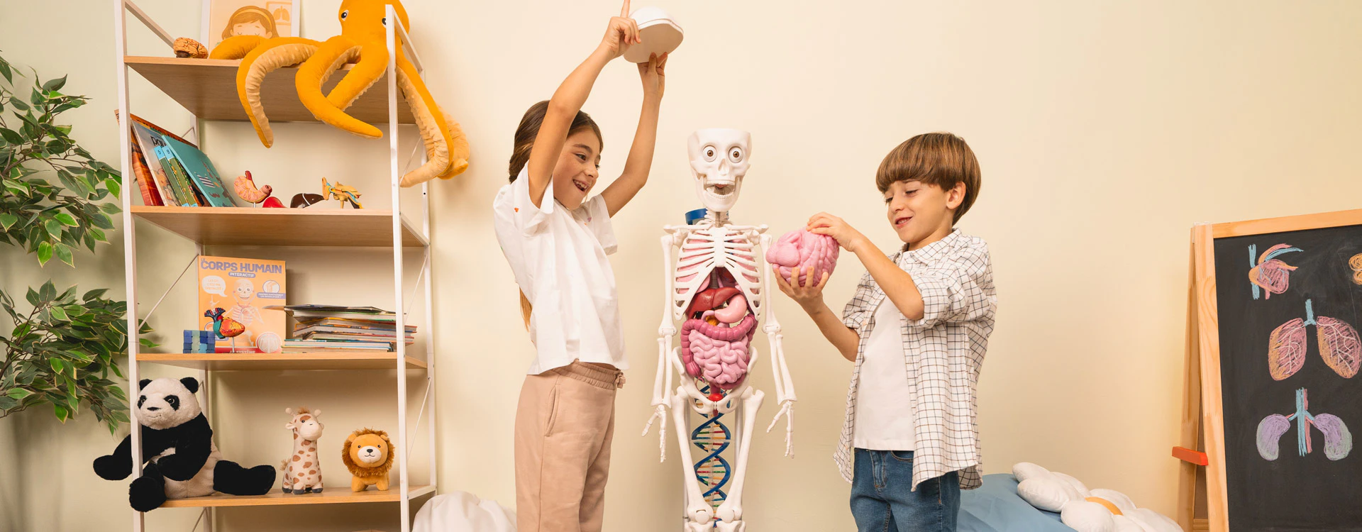 Découvrez la collection Le corps humain interactif et explorez les secrets du corps humain avec Oscar, un adorable squelette interactif à construire !