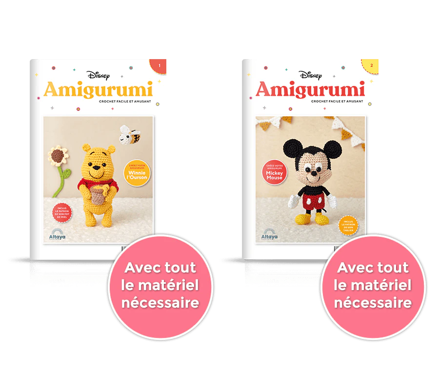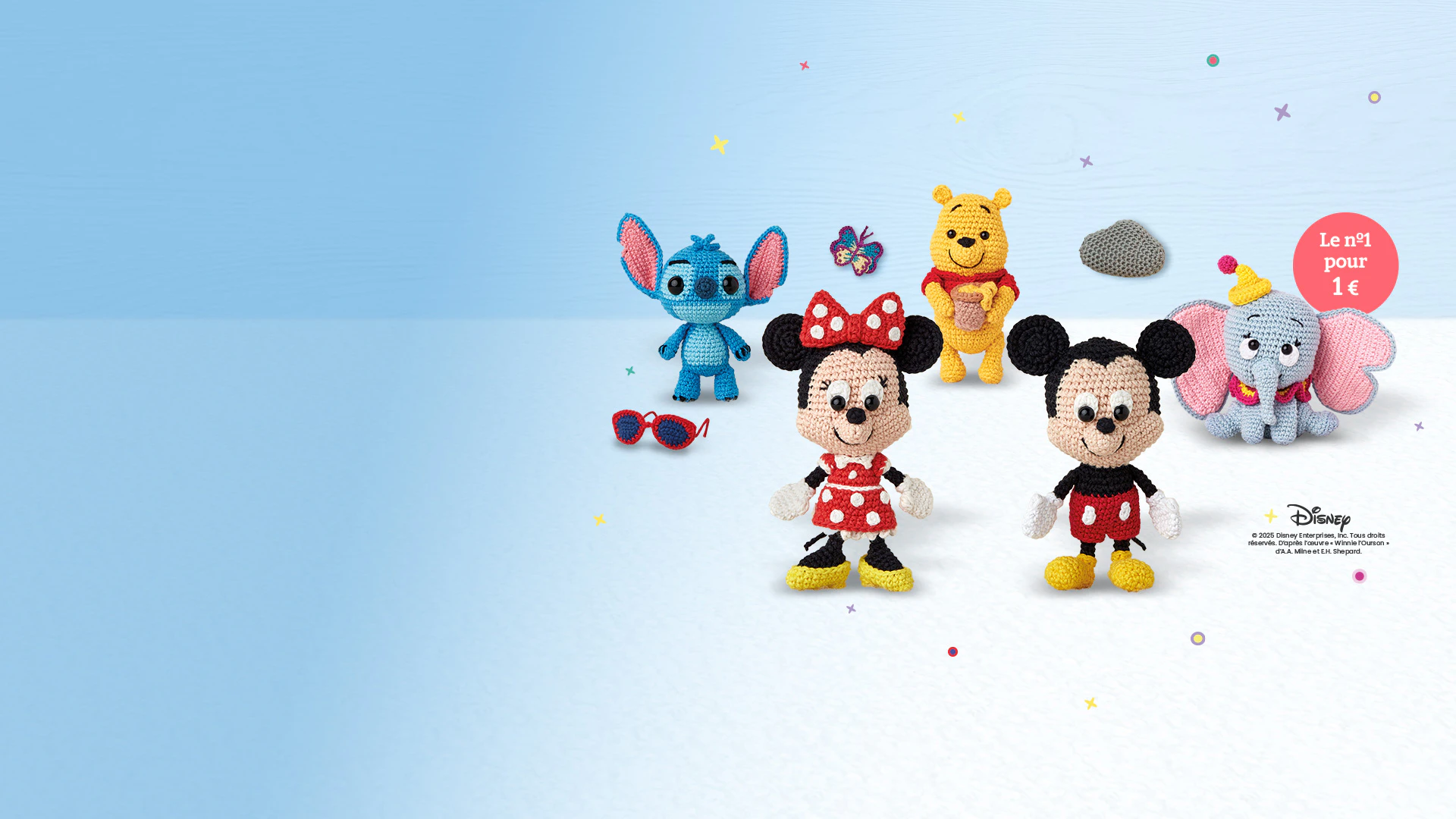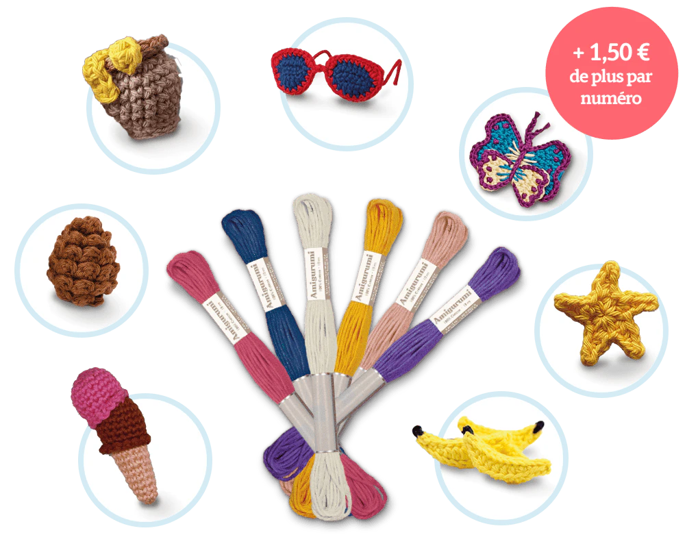 Abonnez-vous pour seulement 1,50 € de plus par numéro (à partir du numéro 4) et vous recevrez les écheveaux nécessaires à la réalisation des accessoires des amigurumi Disney dans les envois 6, 9, 12, 17 et 19.