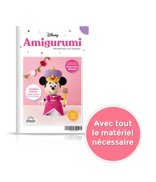 Au cours de la collection, vous recevrez trois numéros spéciaux pour créer des versions XL (environ 20cm) de vos personnages Disney préférés, parés de leurs plus beaux costumes. Chaque numéro spécial contiendra tout le nécessaire pour réaliser ces créations designées exclusivement pour la collection. Avec le premier, vous crochèterez Minnie vêtue de sa robe de princesse, et avec le second Mickey en chevalier.