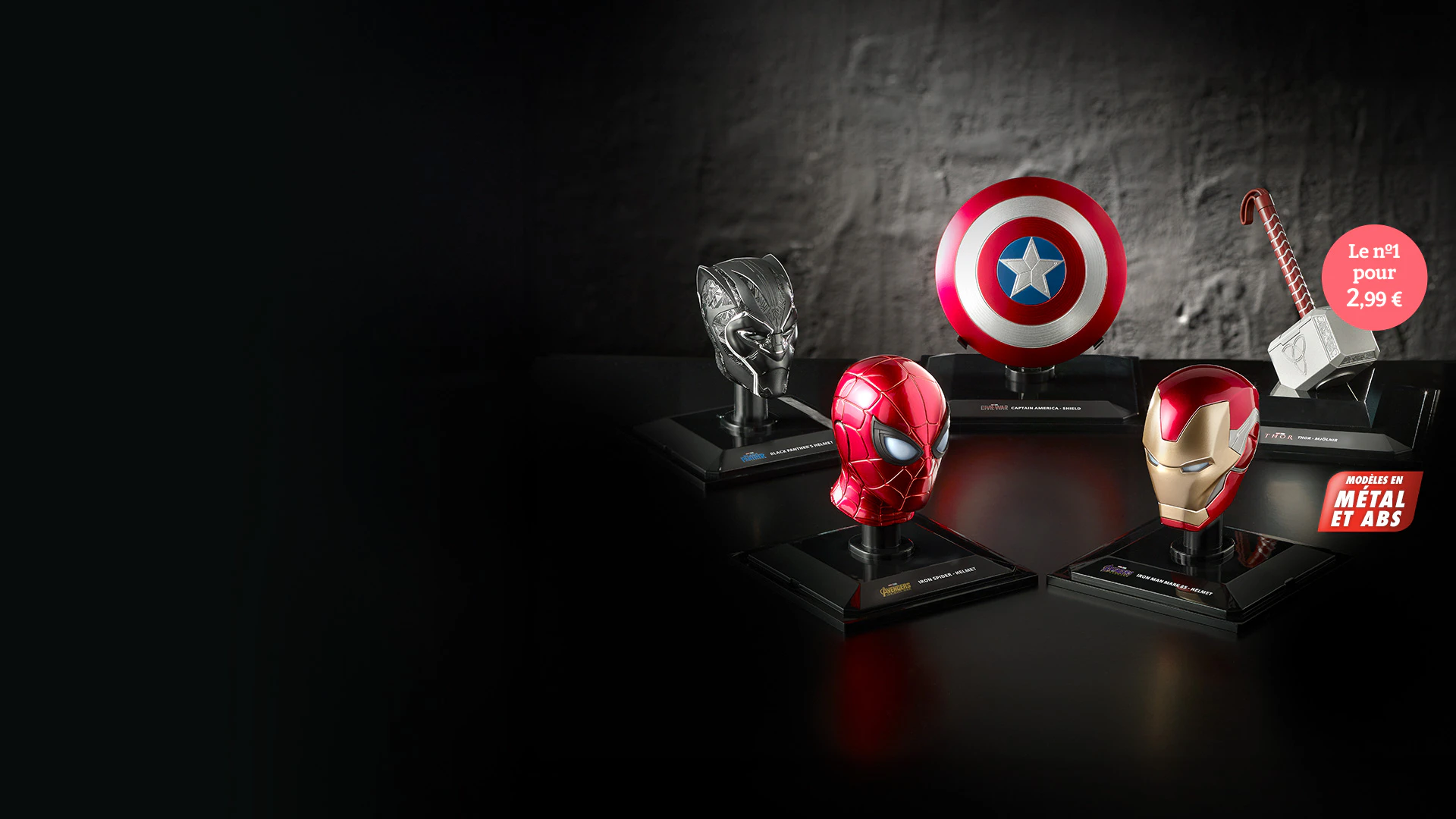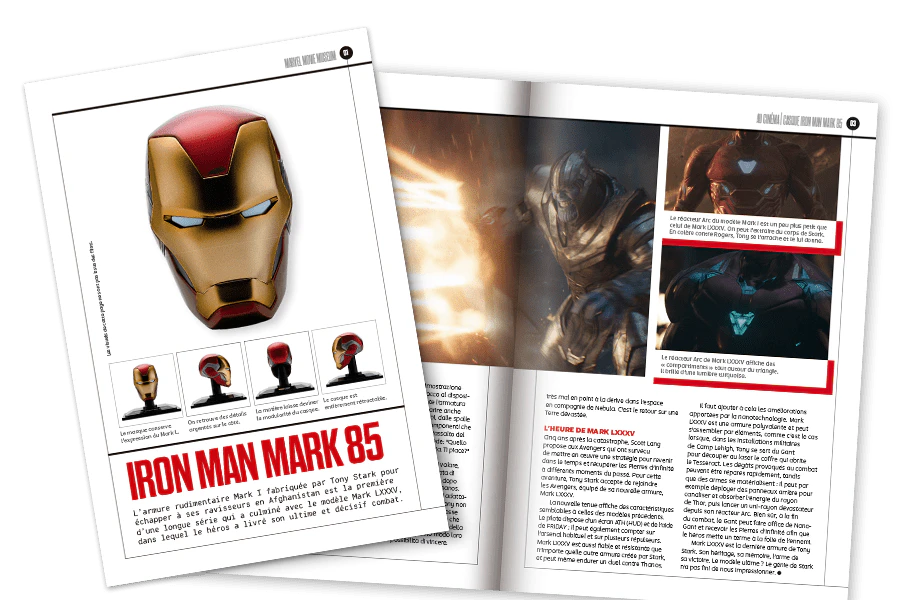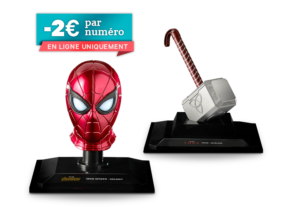 Collectionnez des casques, des armes et d'autres objets emblématiques des meilleurs films des Marvel Studios et créez votre propre musée des super-héros et super-villains les plus charismatiques Super Heroes de l'histoire du cinéma et des bandes dessinées. Recevez également un magazine avec chaque réplique. Vous y trouverez des informations exclusives sur l'univers Marvel.