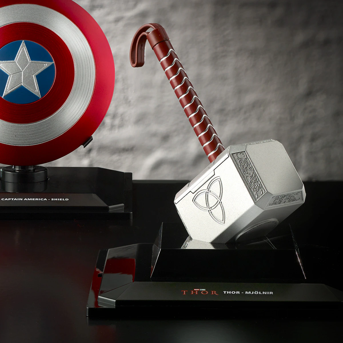 Fabriqués en métal et de grande taille, ces objets sont désormais à votre portée : le Gant de l’Infini, le casque de Hulkbuster, Stormbreaker, la hache de Thor dotée du pouvoir du Bifrost), le casque de Thanos,… et bien d’autres encore.