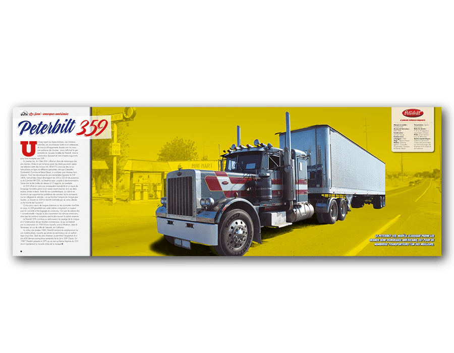 Dès son lancement en 1967, le Peterbilt 359 souleva l’admiration des transporteurs spécialistes du gros tonnage, à tel point qu’il fit chez nombre d’entre eux figure d’objet de désir. Présent sur le marché pendant deux décennies, le 359 demeure aujourd’hui, un demi-siècle après son apparition, un des modèles mythiques de l’industrie du poids lourd nord-américaine.