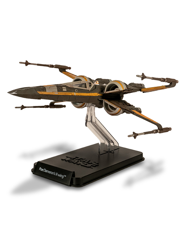 Poe Dameron, le pilote le plus célèbre de la Résistance, est le commandant des escadrons Bleu et Rouge, dans son X-Wing T-70 dénommé Black One.