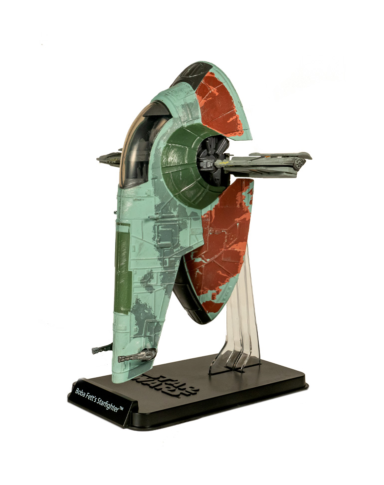 Le vaisseau très particulier, de classe Firespray, utilisé par deux chasseurs de primes, père et fils, a tout du rapace : il ne laisse jamais échapper sa proie !