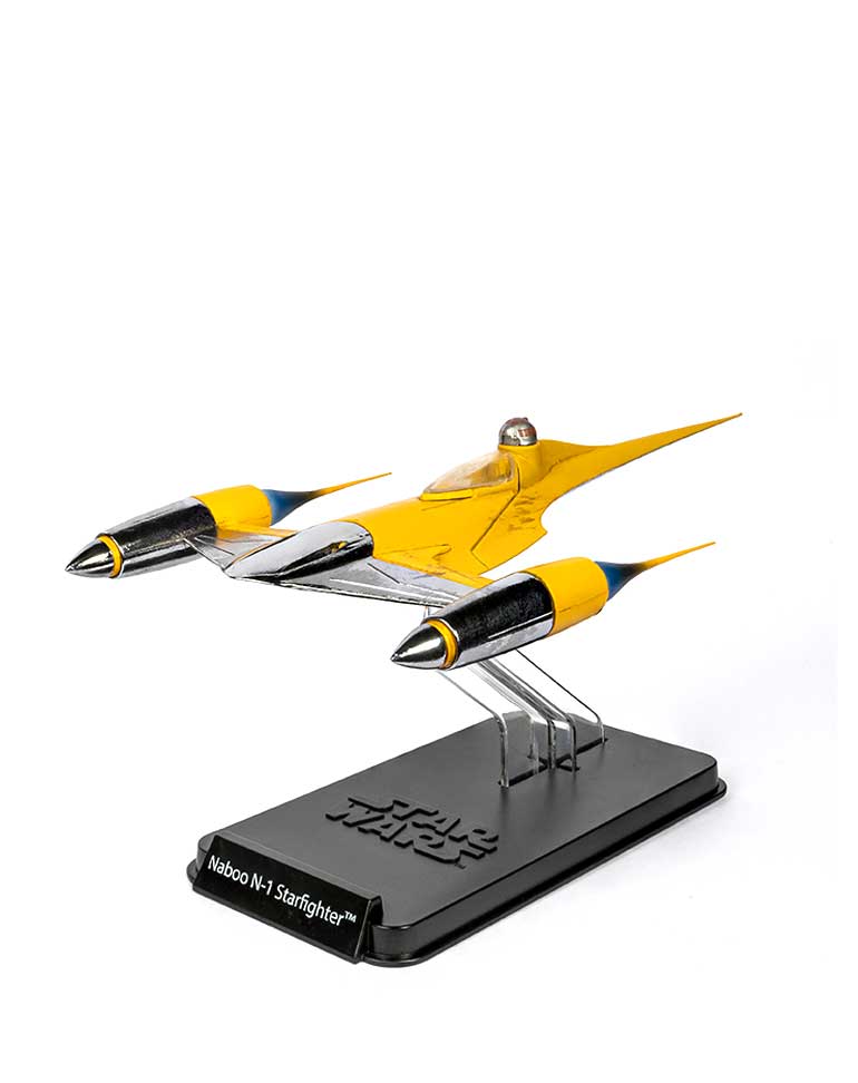 Le chasseur N-1 est l’orgueil des ingénieurs de Naboo, plus œuvre d’art que véhicule de combat. Son design se distingue par des lignes stylisées et un avant chromé.