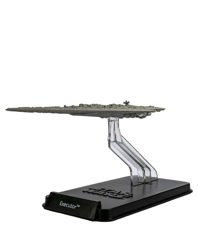Un des véhicules les plus imposants jamais construits, le super destroyer stellaire, représente une nouvelle génération de cuirassiers de l’Empire. Le premier exemplaire va être utilisé par Dark Vador.