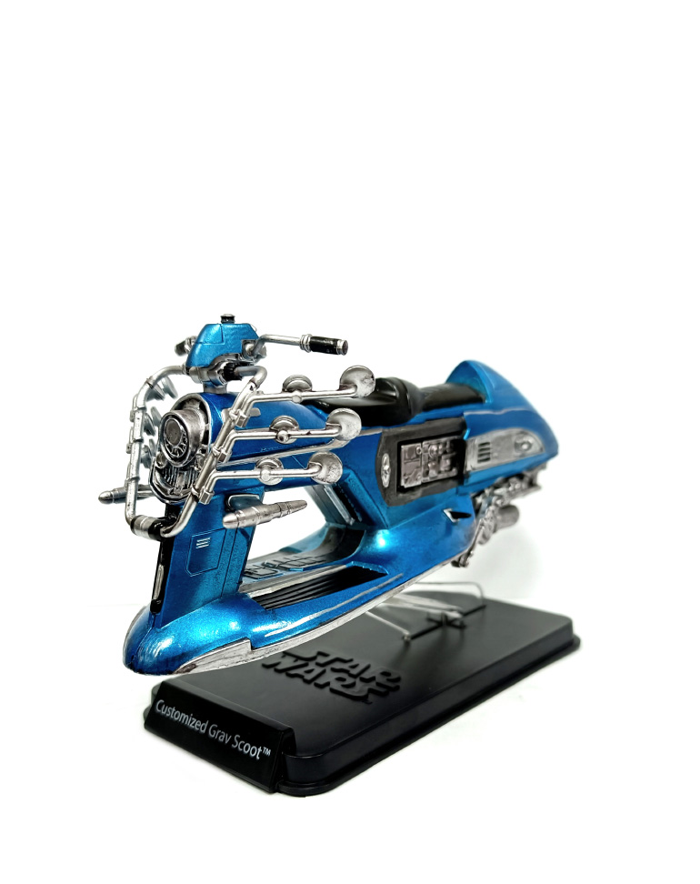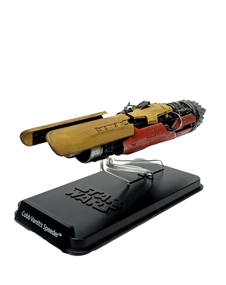 Pour ses déplacements dans les déserts arides de Tatooine, Cobb Vanth utilise un speeder modifié, créé à partir d’un moteur de module de course.