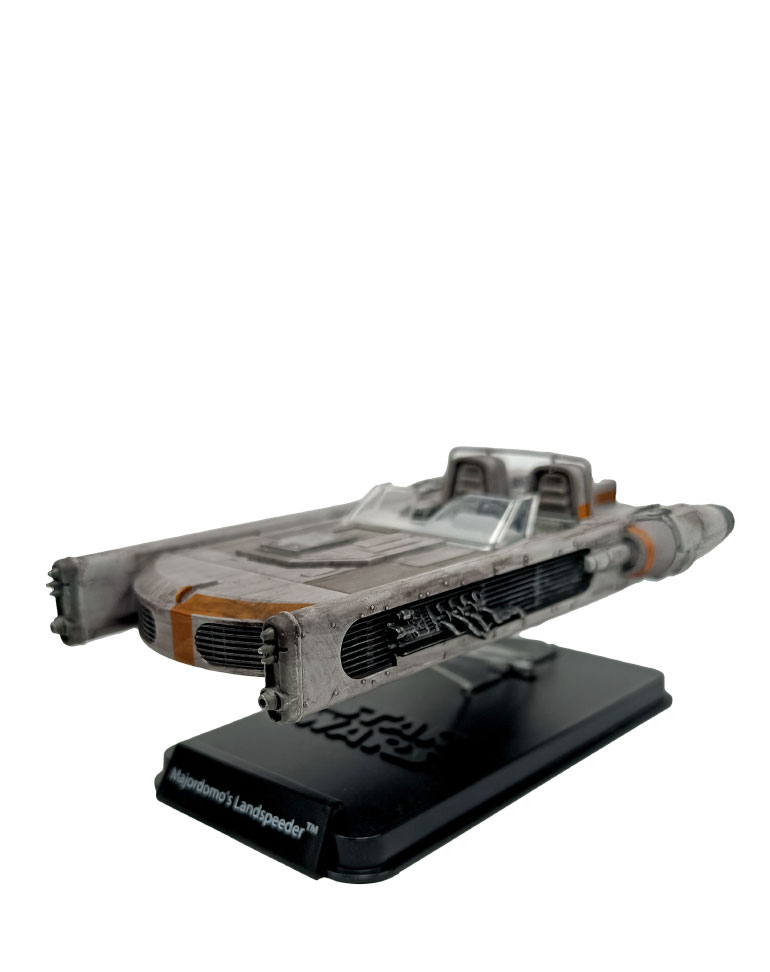 Le maire de Mos Espa et son majordome circulent à travers les rues à bord d’un grand et rapide landspeeder de luxe, signe de leur importance dans la hiérarchie politique.