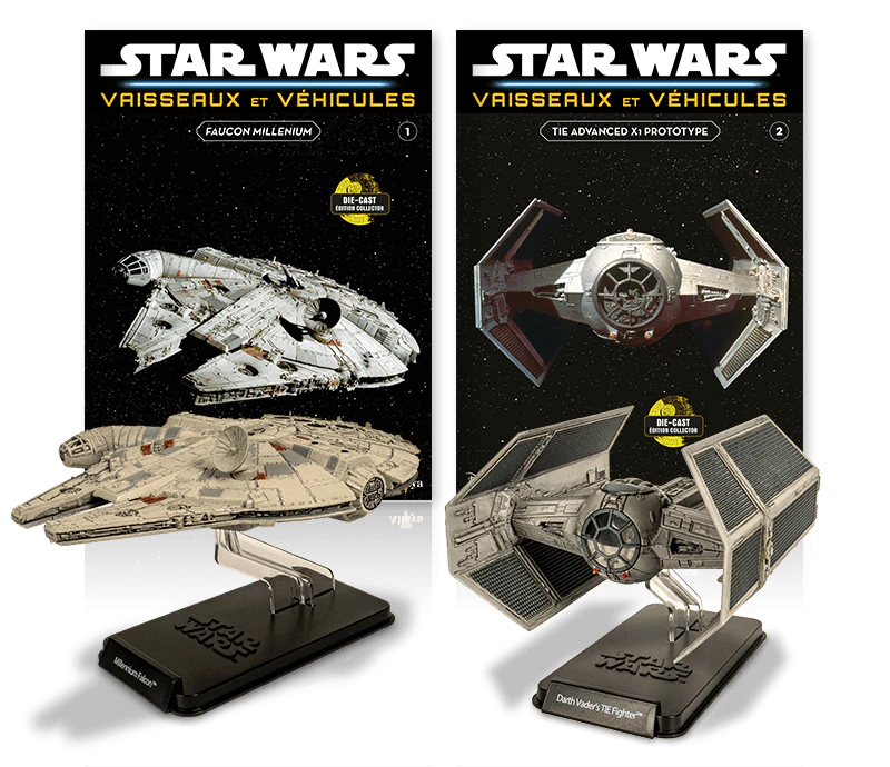 Complétez votre collection de vaisseaux et de véhicules Star Wars avec ces deux vaisseaux exclusifs, chacun livré avec son fascicule spécifique :