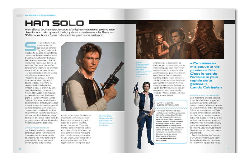 Qui commande un Destroyer Stellaire ? Quand Kylo Ren a-t-il piloté sa navette Upsilon ? Quels vaisseaux Obi-Wan Kenobi a-t-il pilotés ? Découvrez les meilleurs pilotes de la galaxie ainsi que les vaisseaux et véhicules qui ont marqué leurs aventures. Profil des principaux personnages de la saga Star Wars, avec des documents officiels provenant de Lucasfilm.