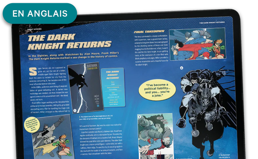 Découvrez toutes les meilleures histoires de Batman, depuis sa première apparition dans Detective Comics jusqu'aux crossovers les plus récents, et redécouvrez les grandes aventures, les ennemis à vaincre, ainsi que les artistes et les scénaristes à l'origine de ces récits épiques.