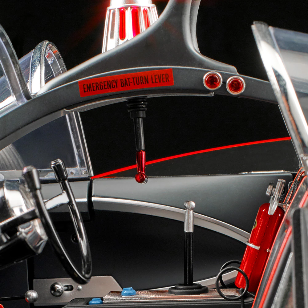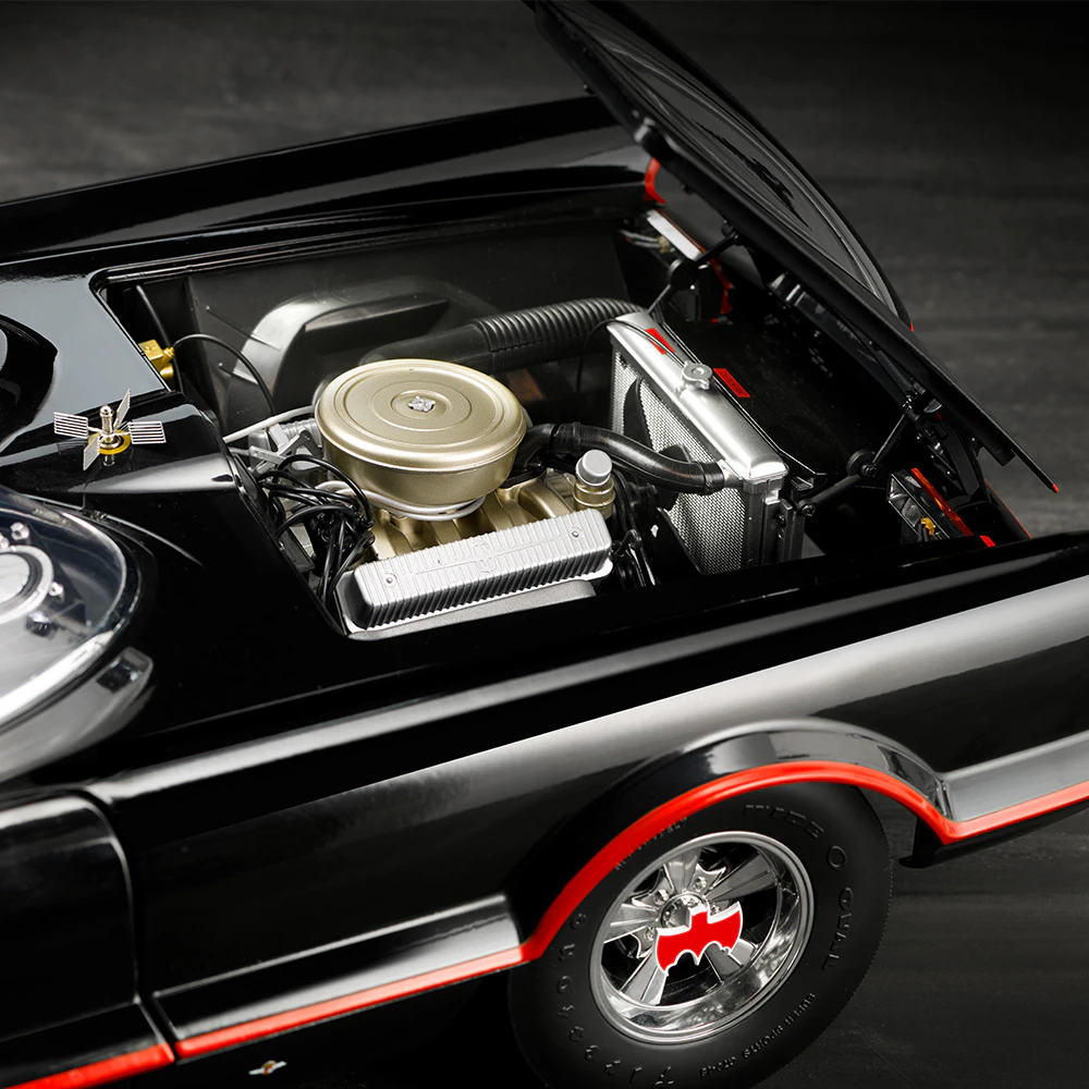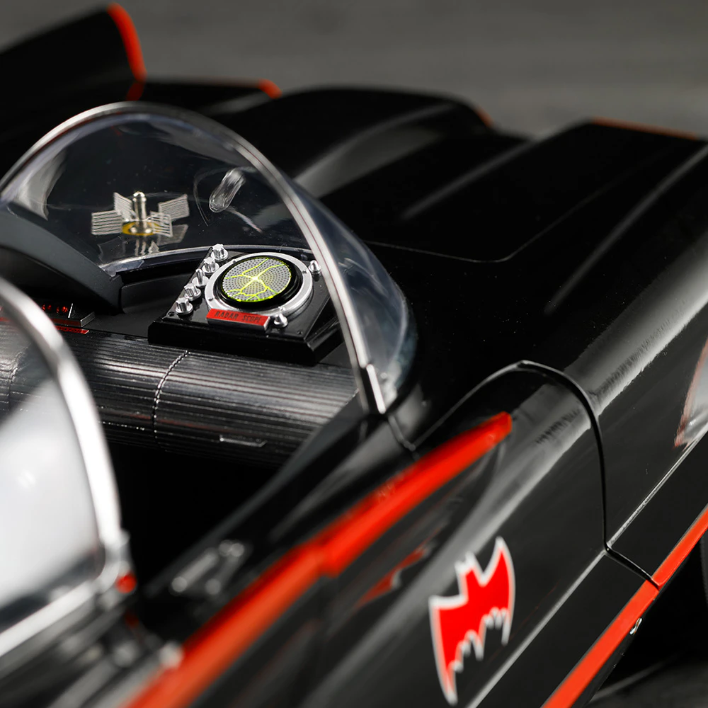 Ce modèle est une réplique magnifiquement réalisée de l'une des voitures les plus célèbres de l'histoire. Grâce à une étude approfondie du véhicule original et de la série télévisée, le modèle est incroyablement détaillé et inclut les nombreux gadgets aidant le duo de super-héros dans leur lutte contre le crime.