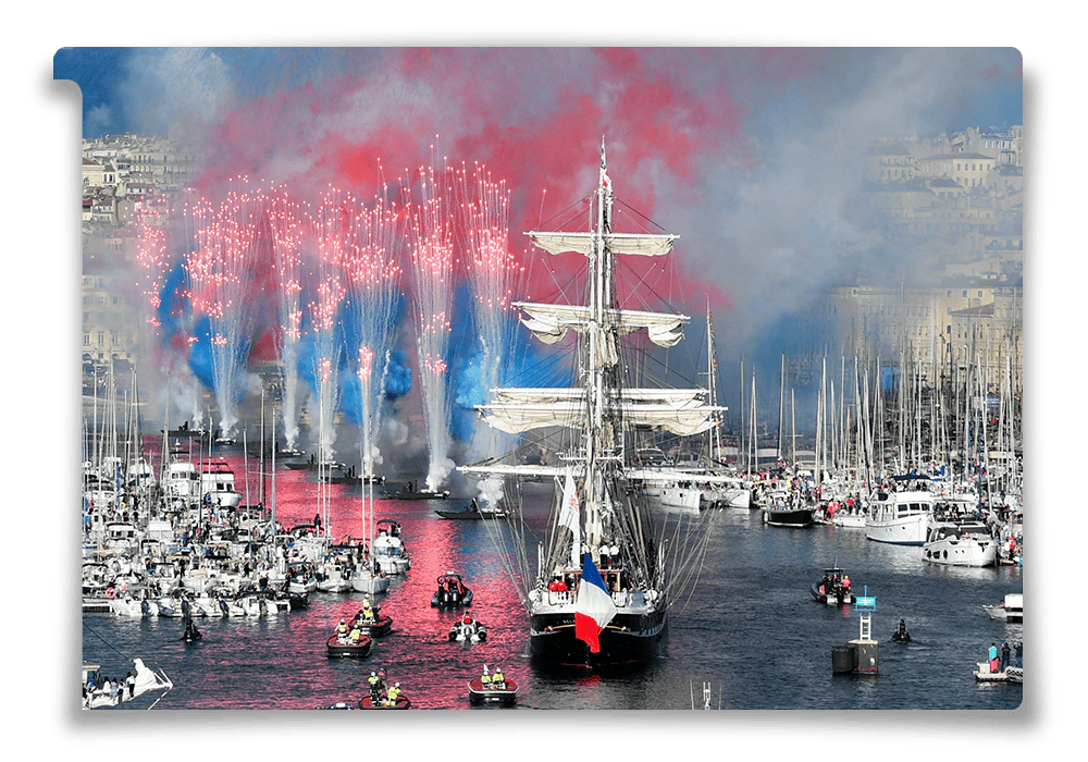 Le Trois-Mâts légendaire a porté le feu d'Olympie pendant 12 jours de traversée jusqu'à Marseille, l'ancienne ville grecque Massalia, où 150 000 personnes l'ont accueilli.