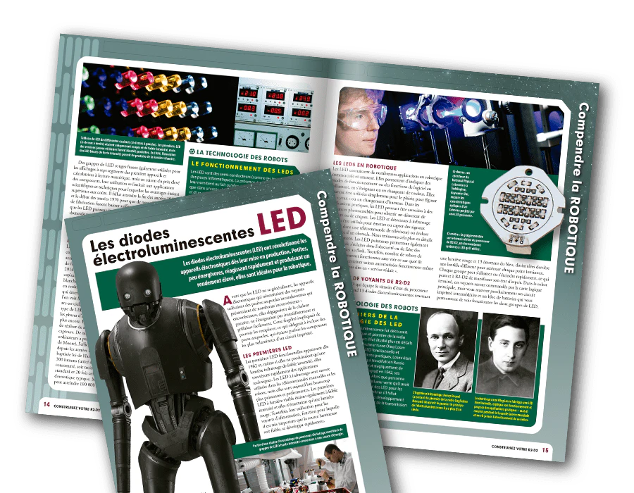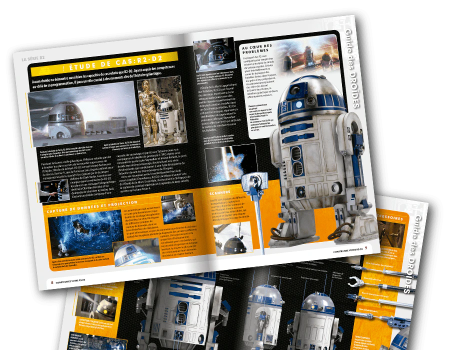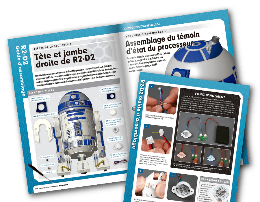 Ces instructions de montage « pas à pas » permettent d’assembler sans difficulté les pièces fournies avec chaque numéro et de tester à chaque étape le bon fonctionnement de votre droïde. Conseils et astuces aident les novices comme les experts à obtenir des résultats parfaits.