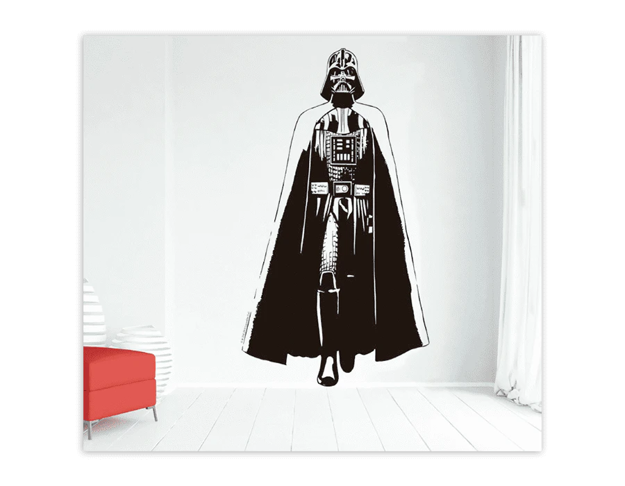 Un spectaculaire sticker Dark Vador. Laissez-vous séduire par le côté obscur de la Force et décorez vos portes, murs ou meubles avec ce motif impérial.