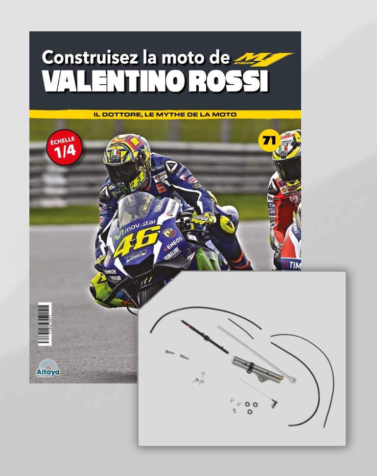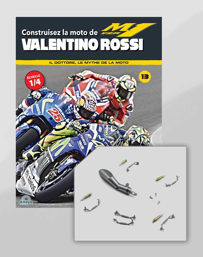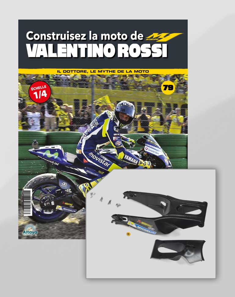 Valentino est de loin le pilote le plus victorieux des temps modernes et le plus aimé au monde. Avec chaque livraison, vous recevrez une ou plusieurs pièces pour construire votre modèle et dans chaque livret numérique, vous trouverez des détails d'assemblage étape par étape, avec des illustrations et des instructions simples pour que vous puissiez réussir votre modèle.