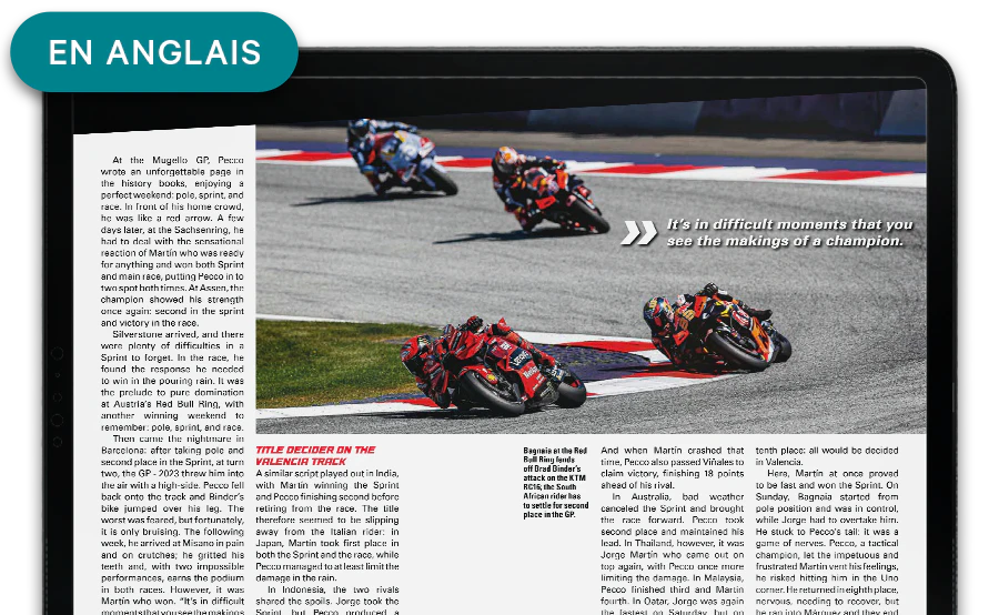 Tout ce qu’il faut savoir sur la DUCATI Desmosedici GP23 de Bagnaia, avec en plus la couverture complète de toutes les courses du Grand Prix 2023 auxquelles il a participé – y compris des fiches détaillées sur chaque circuit.