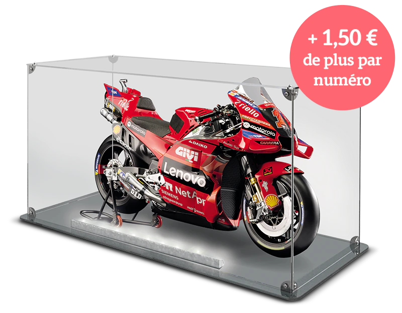 Optez pour l’abonnement Premium et présentez votre incroyable GP23 dans une vitrine d’exposition créée spécialement pour ce modèle. L’accessoire parfait pour admirer et présenter la moto championne du monde avec tous ses détails remarquables et ses finitions haut de gamme.