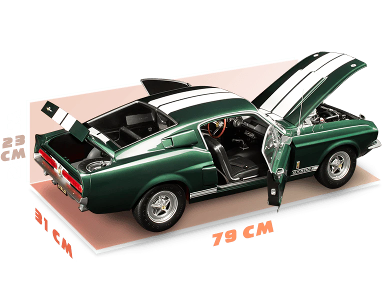 Saisissez l’opportunité de monter pas à pas votre Ford Mustang Shelby GT500® de 1967, une voiture emblématique pour tous les amoureux de la vitesse et de la compétition automobil.