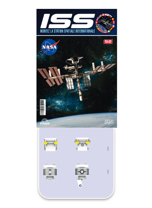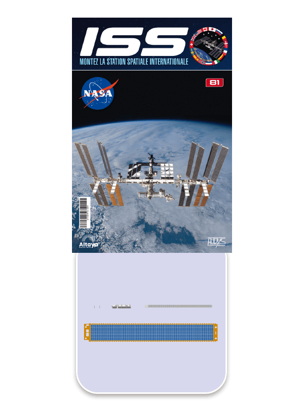 Dans chaque numéro, vous trouverez des pièces pour construire vous-même l’ISS à l’échelle 1/120. Une magnifique maquette aux finitions de qualité à monter facilement grâce à des explications claires et un pas à pas illustré pour vous guider à chaque étape.