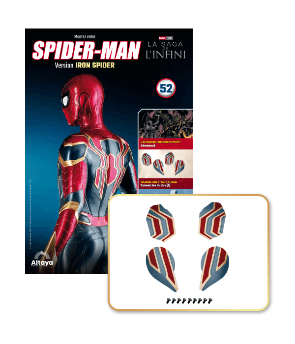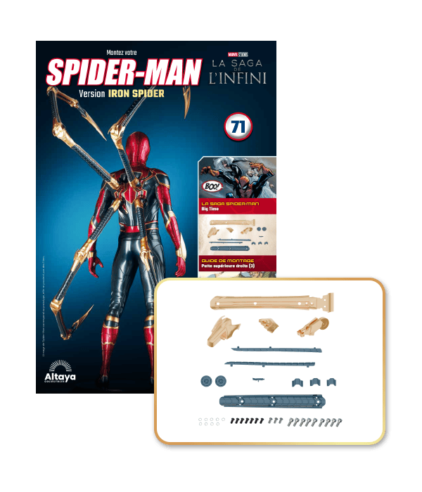 Incroyablement détaillée, cette superbe reproduction grand format de l'armure Iron Spider est proposée dans une édition inédite que les fans de Marvel ne peuvent pas manquer. De plus, la collection est accompagnée d'un magazine richement illustré qui explore l'univers de Spider-Man.