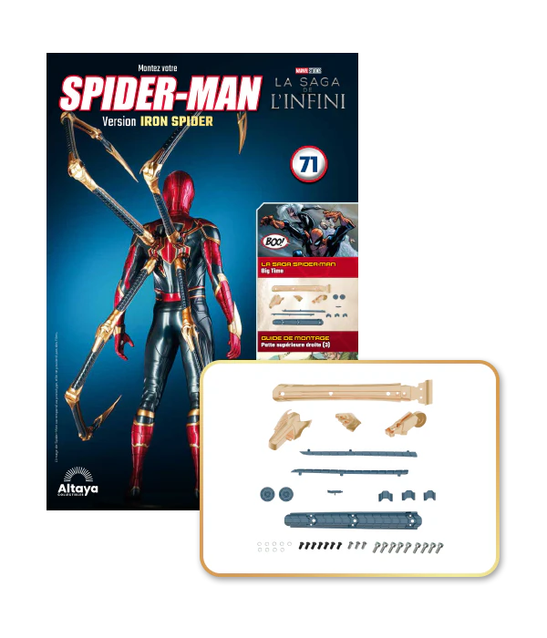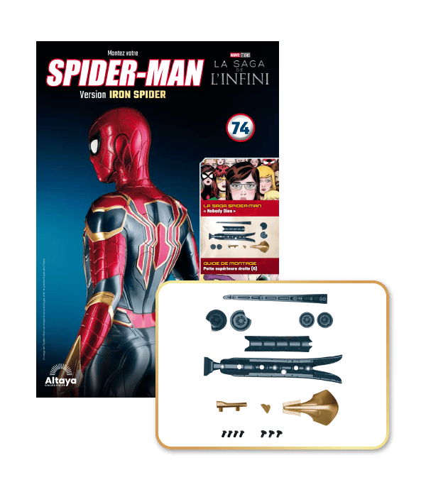 Incroyablement détaillée, cette superbe reproduction grand format de l'armure Iron Spider est proposée dans une édition inédite que les fans de Marvel ne peuvent pas manquer. De plus, la collection est accompagnée d'un magazine richement illustré qui explore l'univers de Spider-Man.