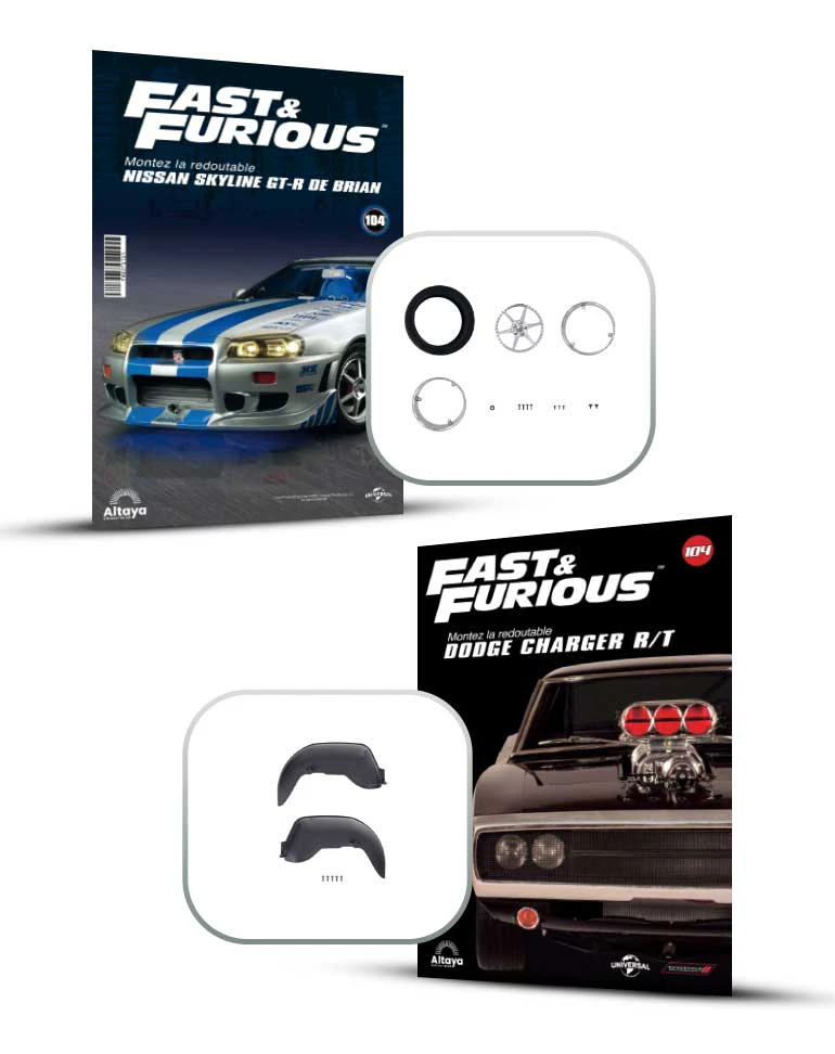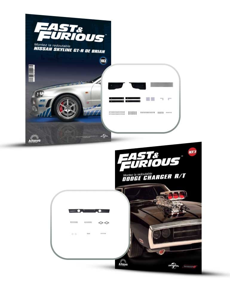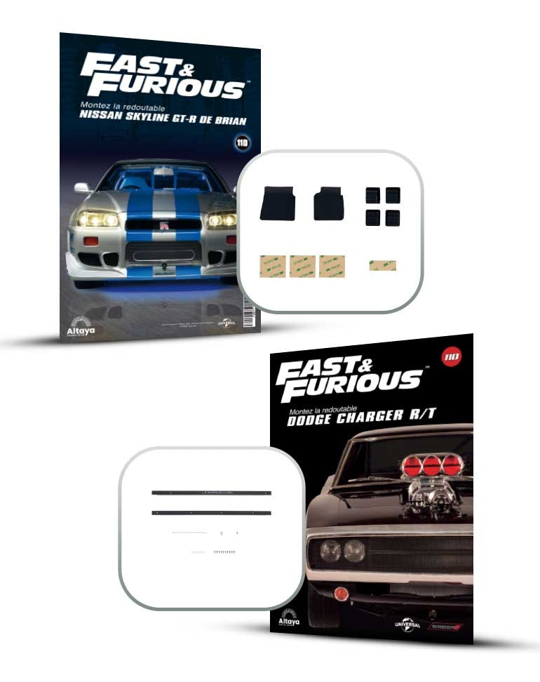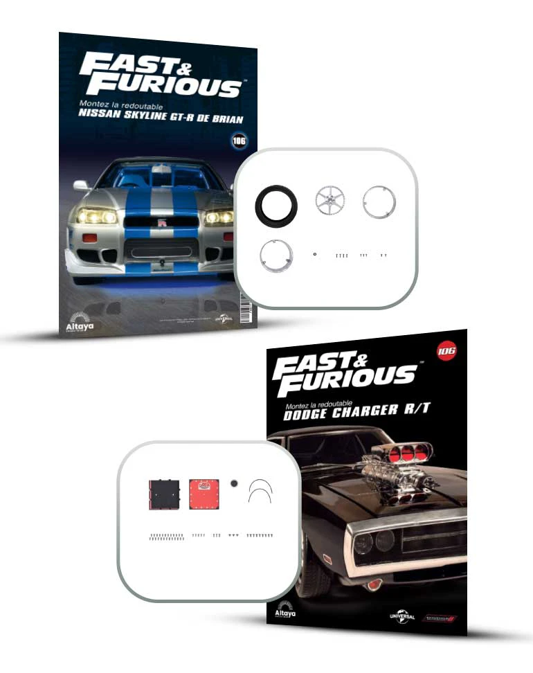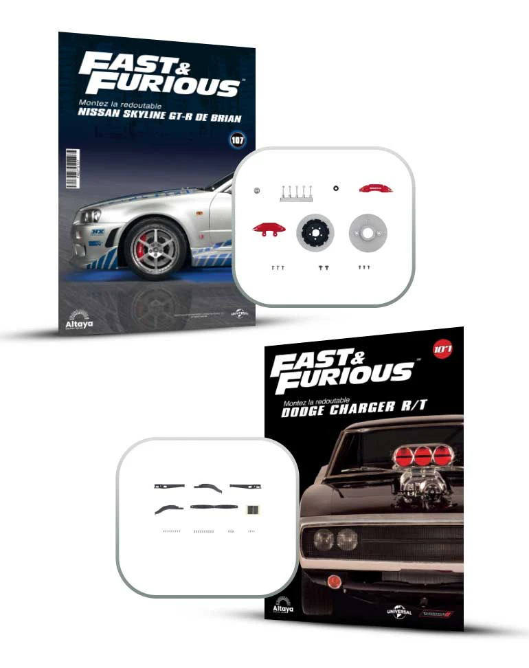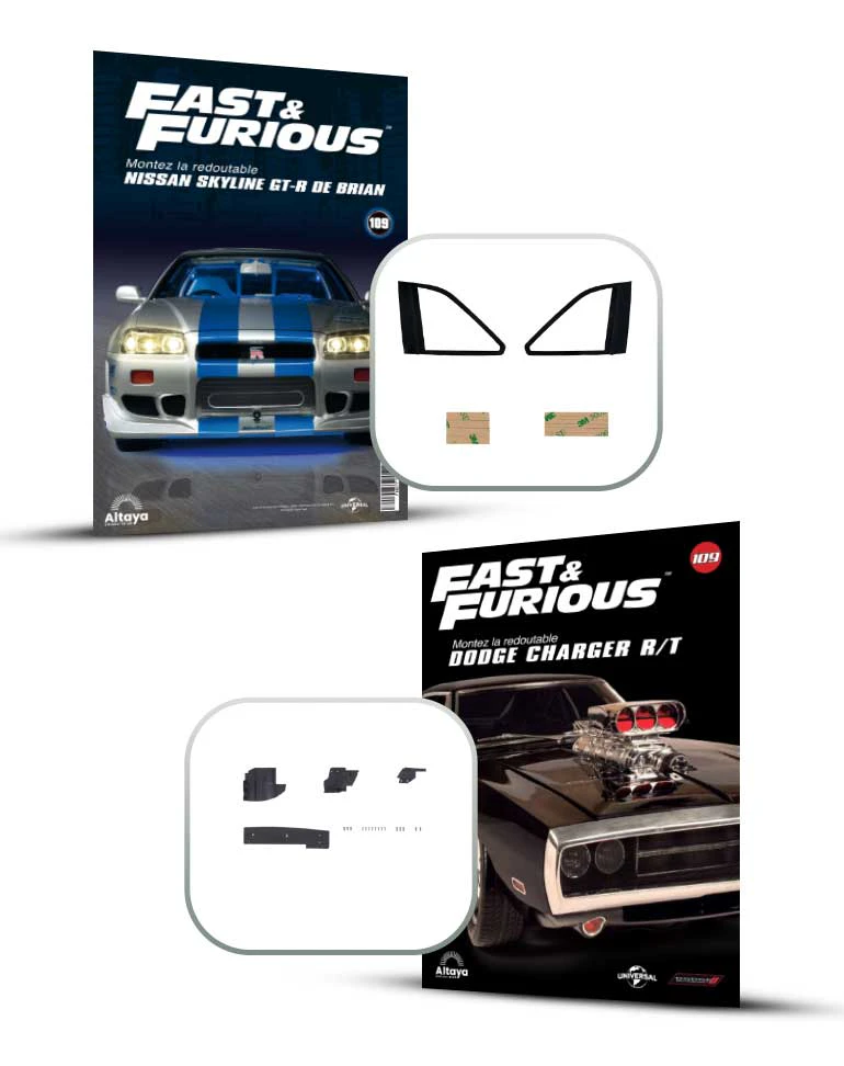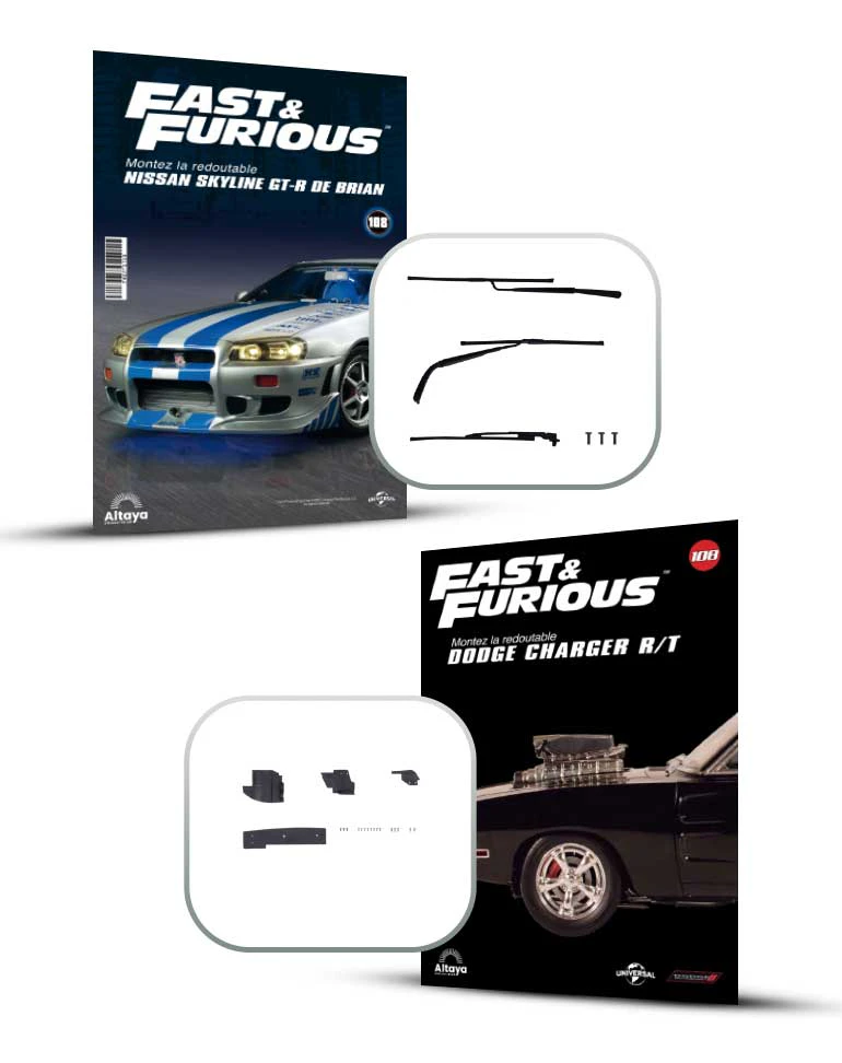 Chaque livraison comprend 1 numéro de la Dodge Charger + 1 numéro de la Nissan Skyline GT-R (R34) et le fascicule numérique.
