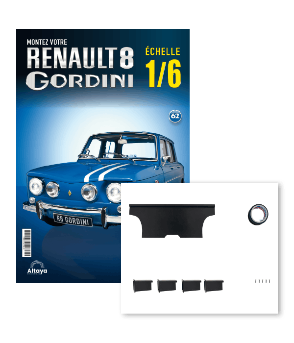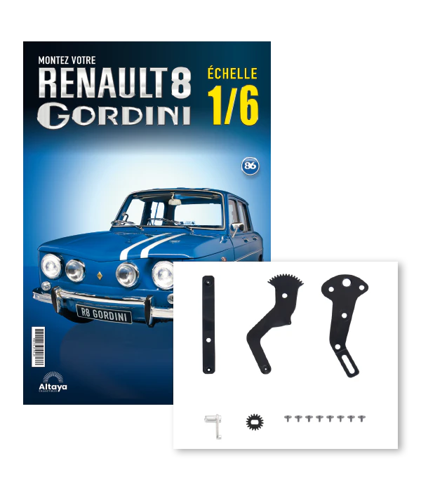 Ce modèle exceptionnel ne vous laissera pas indifférent. Lancée en 1964, la R8 Gordini est devenue l'une des voitures de sport les plus mythiques de Renault, capable d’atteindre une vitesse de pointe impressionnante de 175 km/h. Après avoir subi un lifting en 1966, la « Gorde » acquiert les bandes blanches et les quatre phares avant qui la rendent reconnaissable entre mille. La R8 fait partie aujourd’hui des voitures de course françaises d'après-guerre les plus recherchées. Construisez dès maintenant votre propre réplique en vous abonnant à cette magnifique collection.