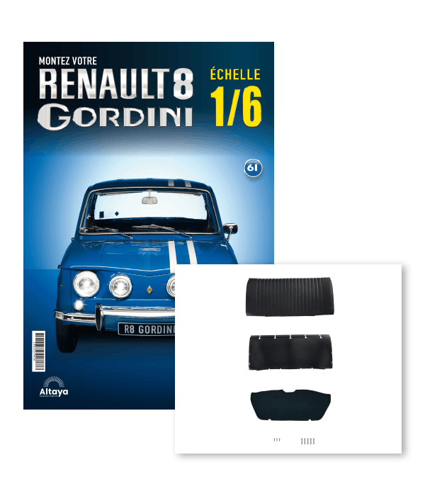 Ce modèle exceptionnel ne vous laissera pas indifférent. Lancée en 1964, la R8 Gordini est devenue l'une des voitures de sport les plus mythiques de Renault, capable d’atteindre une vitesse de pointe impressionnante de 175 km/h. Après avoir subi un lifting en 1966, la « Gorde » acquiert les bandes blanches et les quatre phares avant qui la rendent reconnaissable entre mille. La R8 fait partie aujourd’hui des voitures de course françaises d'après-guerre les plus recherchées. Construisez dès maintenant votre propre réplique en vous abonnant à cette magnifique collection.