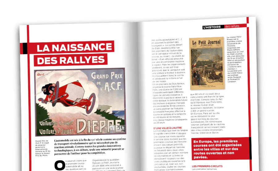 Compte tenu des liens étroits entre Renault, Gordini et le monde du sport automobile, nous vous présentons une rubrique consacrée à l'histoire du rallye, de ses origines à nos jours. La Coupe Gordini, inaugurée en 1966, a beaucoup contribué à asseoir la réputation de la R8 et à mettre en lumière ses exploits sportifs hors du commun.
