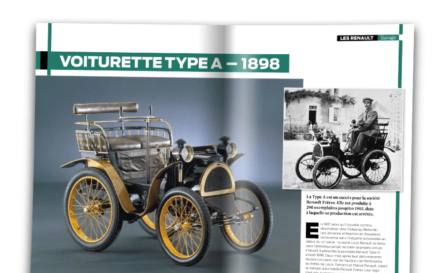 Une rubrique consacrée aux modèles les plus emblématiques de la marque Renault, depuis les débuts de la Renault Type A de 1898 et du Type G de 1902, jusqu'à aujourd'hui, avec de superbes illustrations et des spécifications complètes pour chaque modèle.